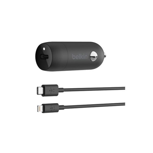 Belkin – Adaptador de corriente para el coche – 20 vatios – 3.6 A – PD (24 pin USB-C) – en el cable: Lightning – negro