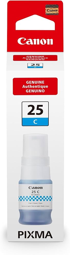 Con una capacidad de impresión de hasta 7,000 páginas, el cartucho de tinta Canon GI-25 Cyan es una opción económica y eficiente para tus necesidades de impresión diarias. Además, su diseño innovador y duradero garantiza que cada impresión sea nítida y precisa, sin manchas ni