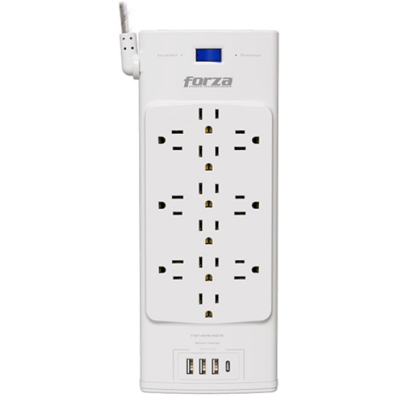 Forza – Surge protector – AC 110/220 V – 12 Tomas de Corriente – 3-USBA/1C 2700J WH