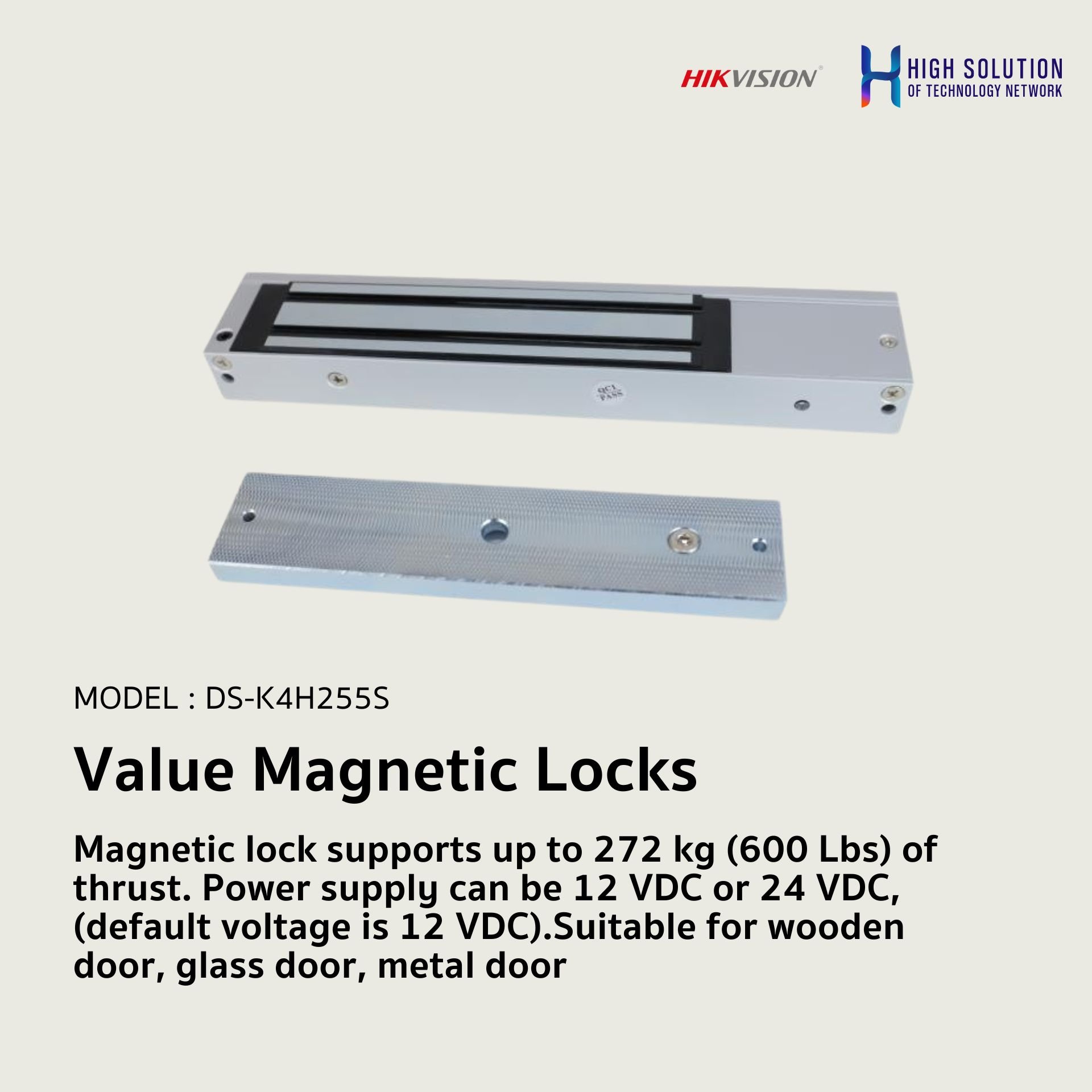 Hikvision – Magnetic lock supports – up to 272 kg 600 Lbs