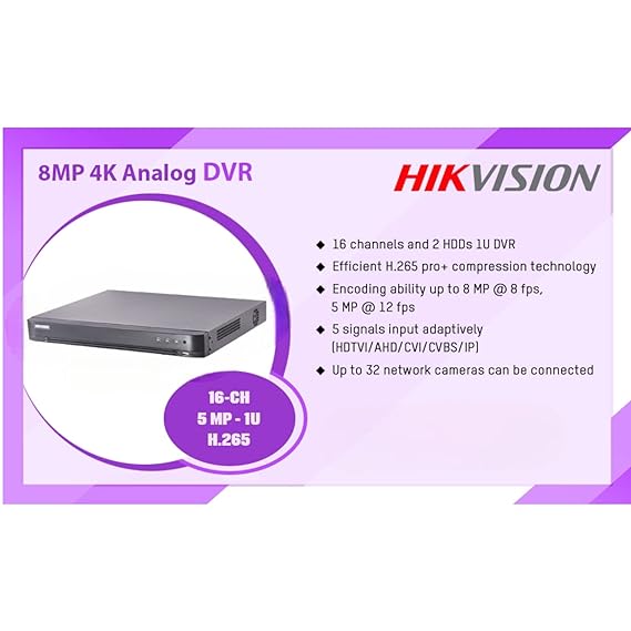 Hikvision – Standalone DVR – 16 Video Channels – Networked – H.265 AcuSense