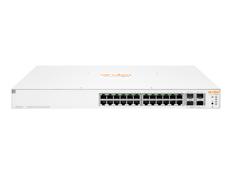 HPE Aruba Instant On 1930 24G Class4 PoE 4SFP/SFP+ 370W Switch – Conmutador – L3 – Gestionado – 24 x 10/100/1000 (PoE) + 4 x 1 Gigabit / 10 Gigabit SFP+ – montaje en rack – PoE (370 W)