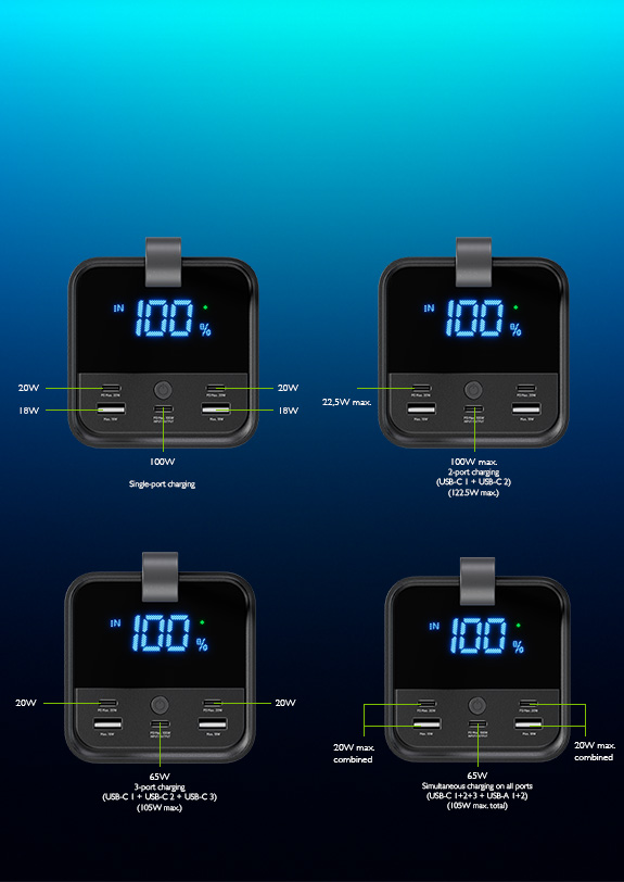 Klip Xtreme – Power bank – 24 pin USB-C – 2 x 4 pin USB Type A / 3 x 24 pin USB-C – Lithium polymer – Para Universal – 100W 50.000mAh