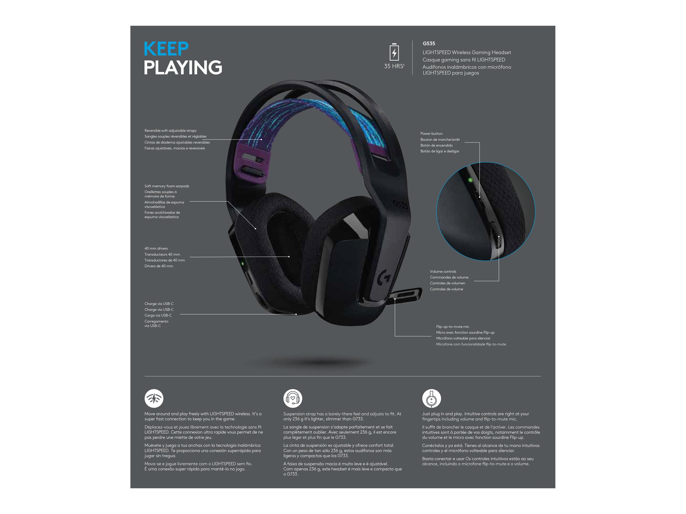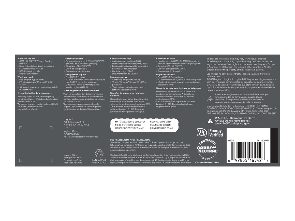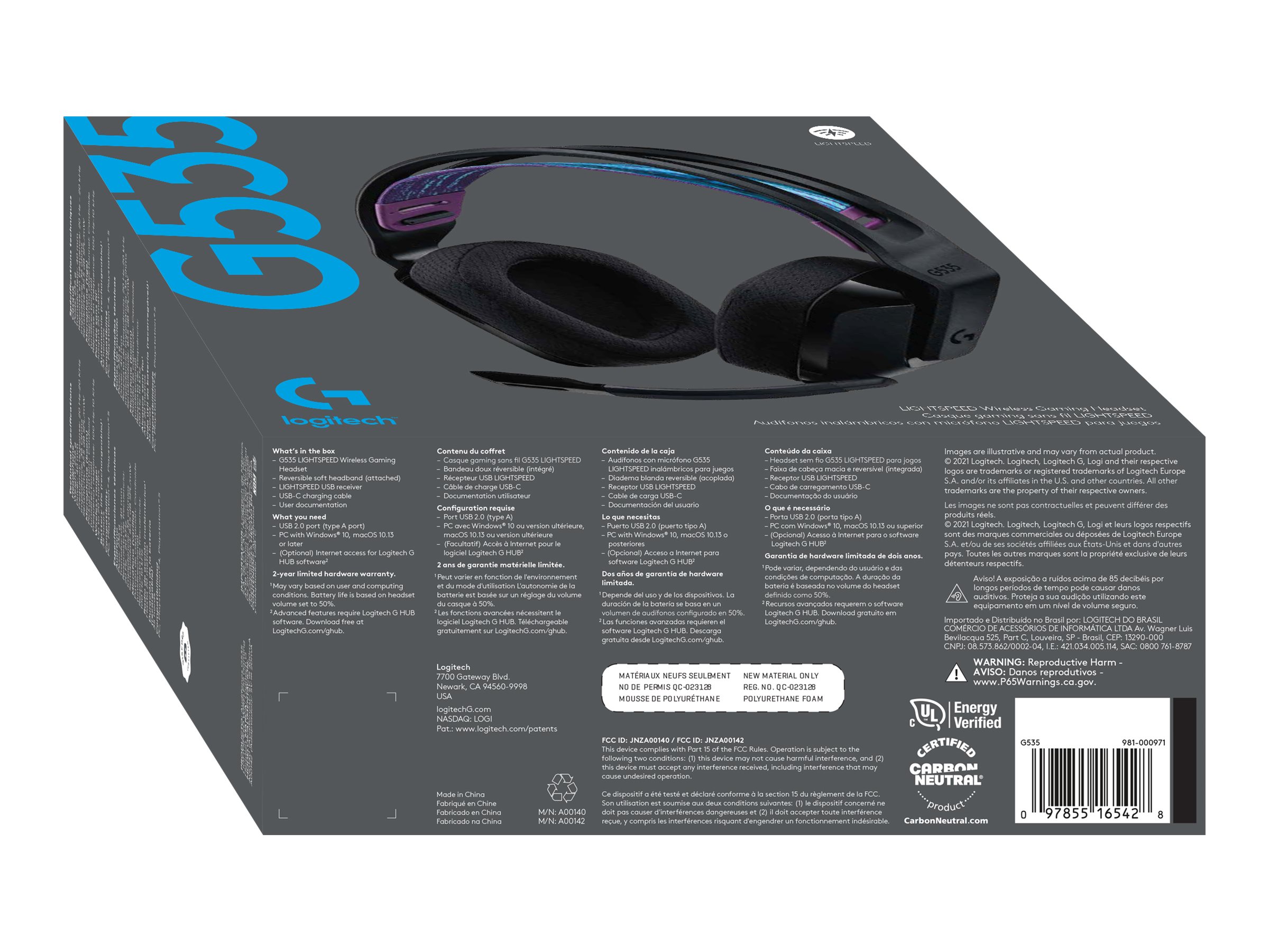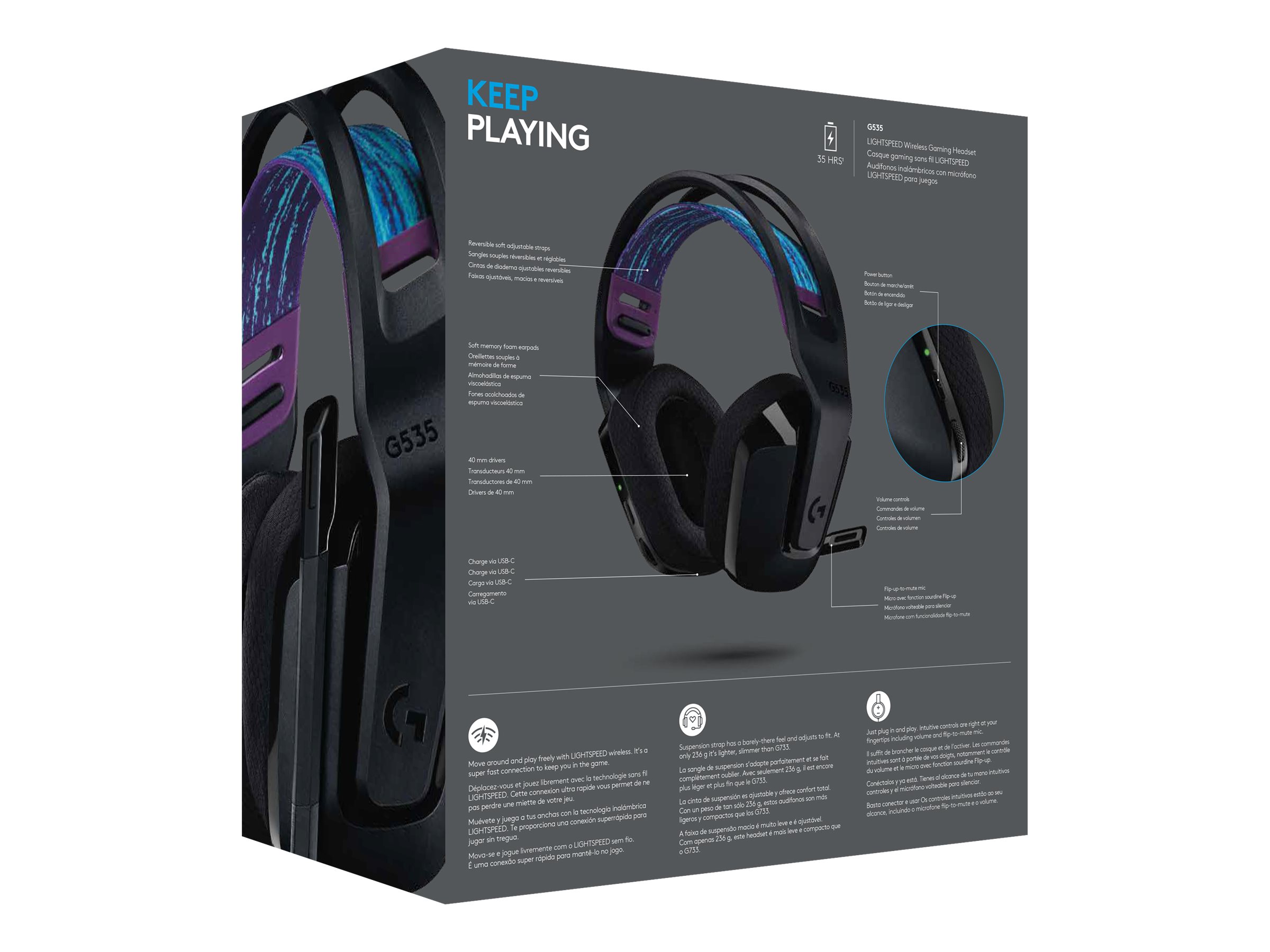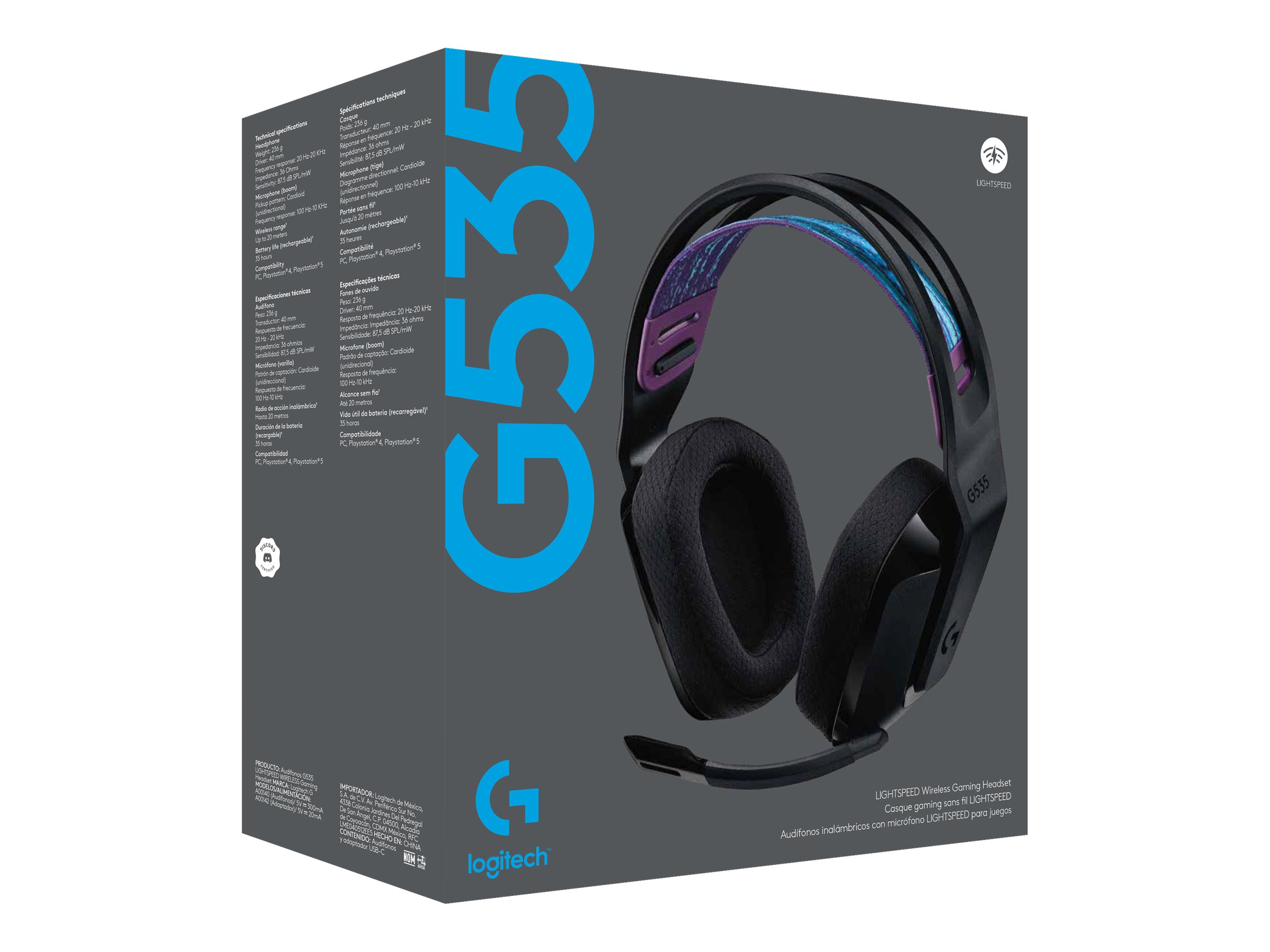 | Modelo | G535 LIGHTSPEED Wireless Gaming Headset – Lightweight on-ear headphones, flip to mute mic, stereo, compatible with PC, PS4, PS5, USB rechargeable – Black |