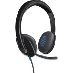 Logitech H570e Wired Headset, Stereo Headphones with Noise-Cancelling Microphone, USB, in-Line Controls with Mute Button, Indicator LED, PC/Mac/Laptop – Black – Auricular – en oreja – cableado – USB – Certificado para Skype Empresarial, con certificación Lync 2013