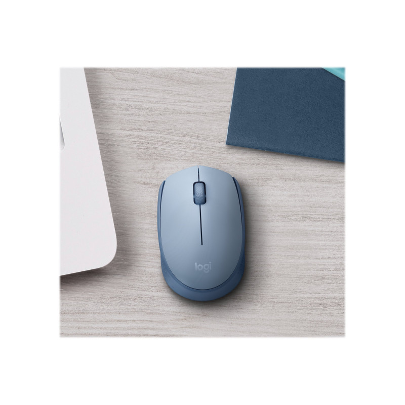 Logitech M170 Wireless Mouse, Ambidextrous, Blue Gray – Ratón – diestro y zurdo – óptico – 3 botones – inalámbrico – 2.4 GHz – receptor inalámbrico USB – azul/gris