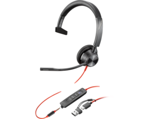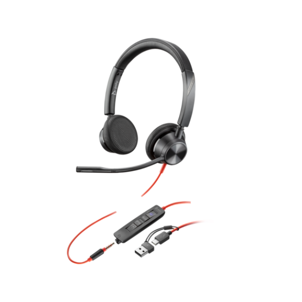 Poly Blackwire – 3325 – Headset – Wired – +3.5mm Plug +USB-C/A Adapter